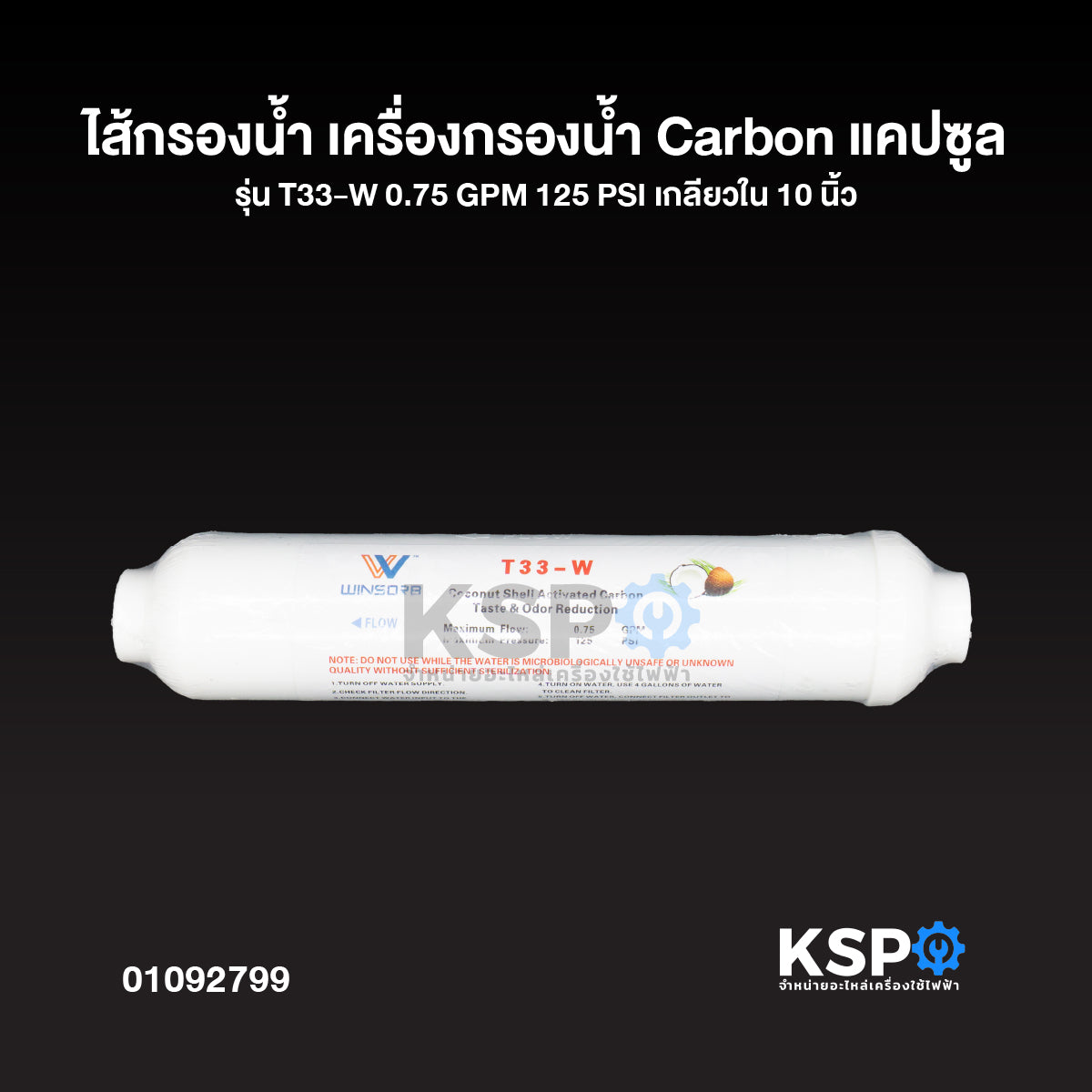 ไส้กรองน้ำ เครื่องกรองน้ำ Carbon แคปซูล รุ่น T33-W 0.75 GPM 125 PSI เกลียวใน 10 นิ้ว อะไหล่เครื่องกรองน้ำ