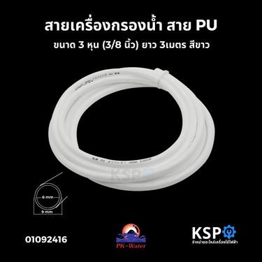 สายท่อน้ำ PU ขนาด 3 หุน (3/8 นิ้ว) ยาว 3 เมตร ผลิตจากวัสดุ Polyurethane คุณภาพสูง มีความยืดหยุ่น แข็งแรง และทนแรงดันได้ดี ได้มาตรฐาน NSF สำหรับน้ำดื่ม เหมาะสำหรับการใช้งานร่วมกับเครื่องกรองน้ำ RO และระบบกรองน้ำทั่วไป ที่ต้องการประสิทธิภาพสูงและความปลอดภัยในการใช้งาน