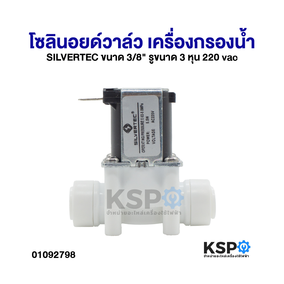 โซลินอยด์วาล์ว เครื่องกรองน้ำ SILVERTEC ขนาด 3/8" รูขนาด 3 หุน 220vac Solenoid Valve Plastic อะไหล่เครื่องกรองน้ำ