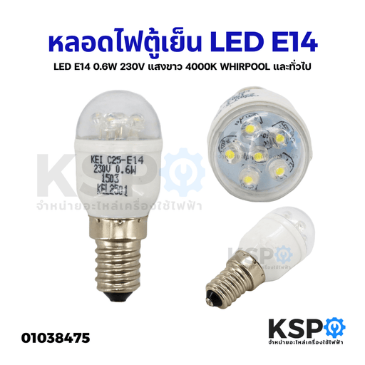 ดูรายละเอียดทั้งหมดหลอดไฟตู้เย็น LED E14 0.6W 230V แสงขาว 4000K WHIRPOOL และทั่วไป หลอดไฟเกลียว อะไหล่ตู้เย็น