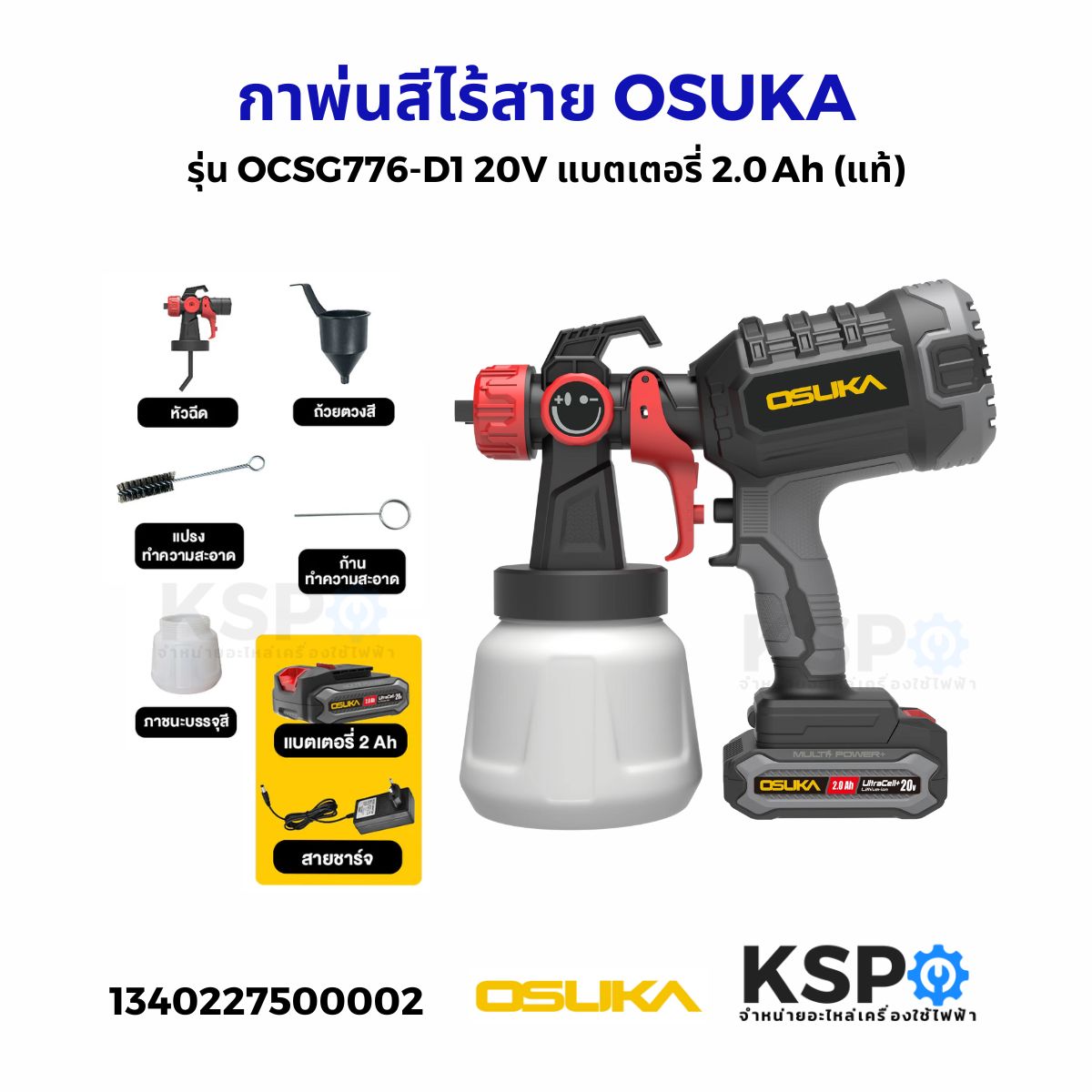 กาพ่นสีไร้สาย OSUKA รุ่น OCSG776-D1 20V แบตเตอรี่ 2.0 Ah (แท้) เครื่องมือช่าง
