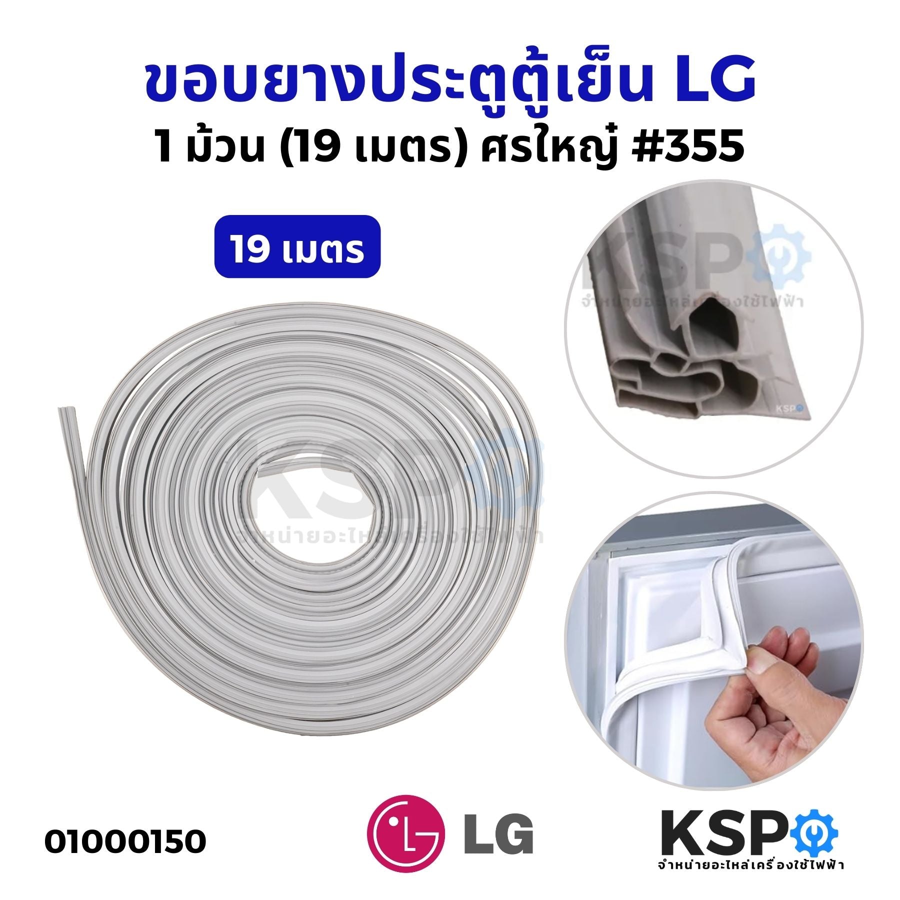 ขอบยางประตูตู้เย็น ยางตู้เย็น LG แอลจี ม้วน 19 เมตร ศรใหญ๋ #355 สีเทา อะไหล่ตู้เย็น