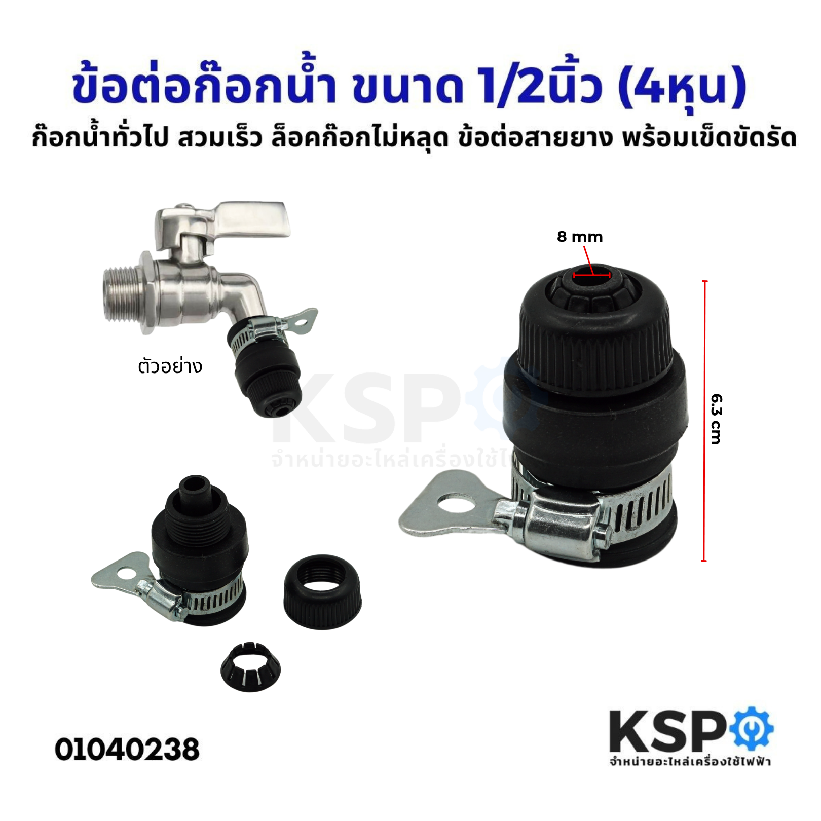 ชนิดสินค้า Product type : ข้อต่อก๊อกน้ำ ข้อต่อสายยาง ข้อต่อก๊อกน้ำสวมเร็ว ข้อต่อสายยางสวมกับก็อกน้ำ พร้อมเข็ดขัดรัด