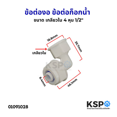 ข้อต่องอ ข้อต่อก็อกน้ำ ขนาด เกลียวใน 4 หุน 1/2" ทั่วไป อะไหล่เครื่องกรองน้ำ
