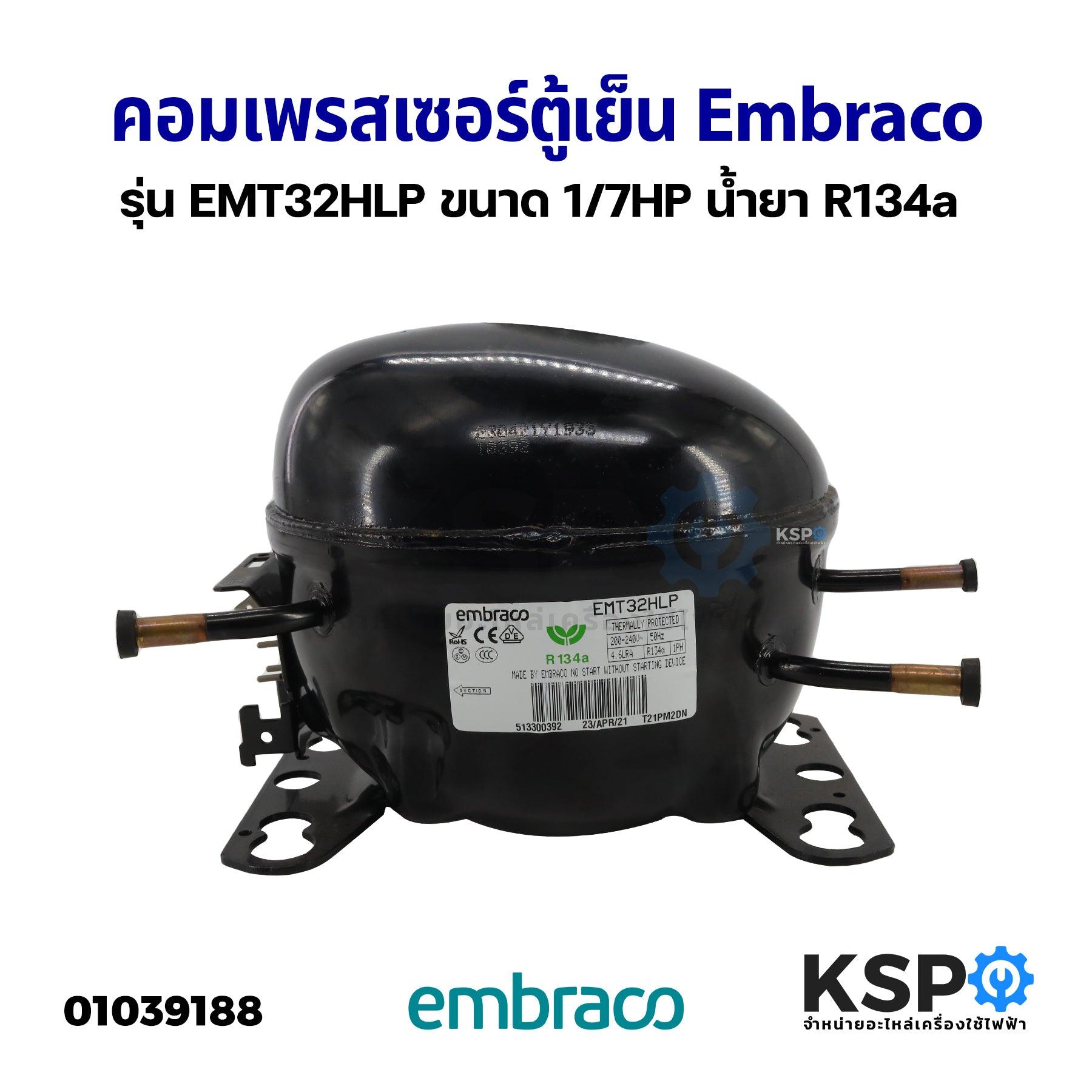 คอมเพรสเซอร์ ตู้เย็น Embraco รุ่น EMT32HLP ขนาด 1/7HP น้ำยา R134a อะไหล่ตู้เย็น