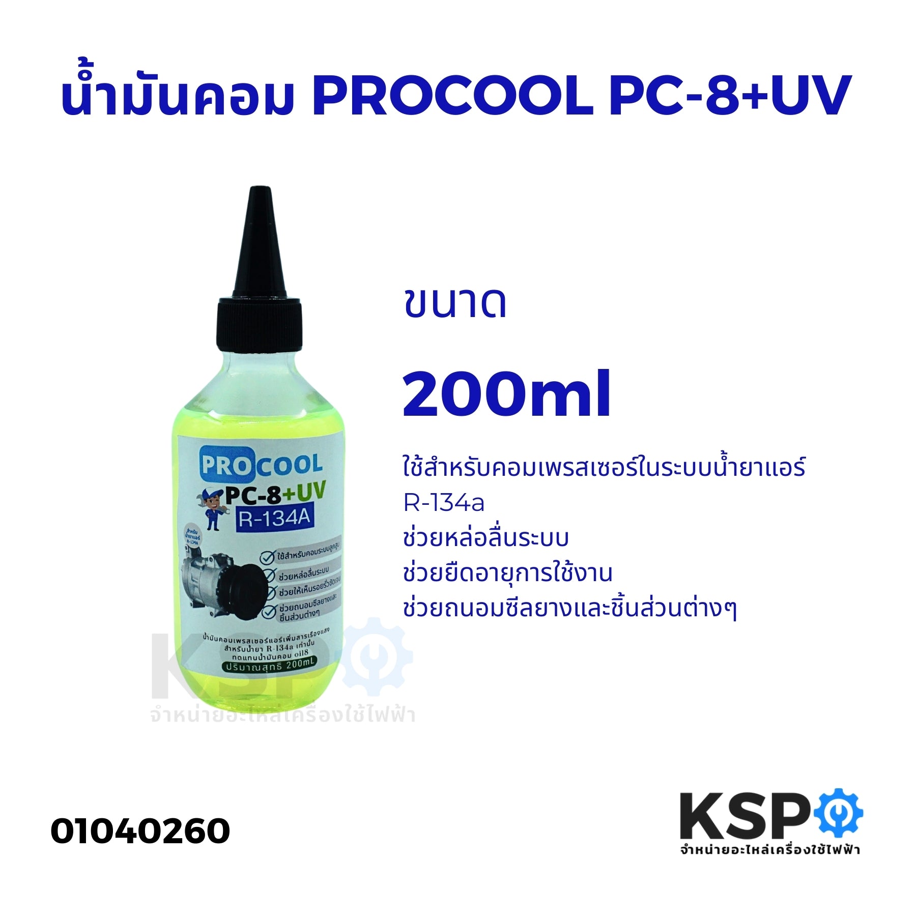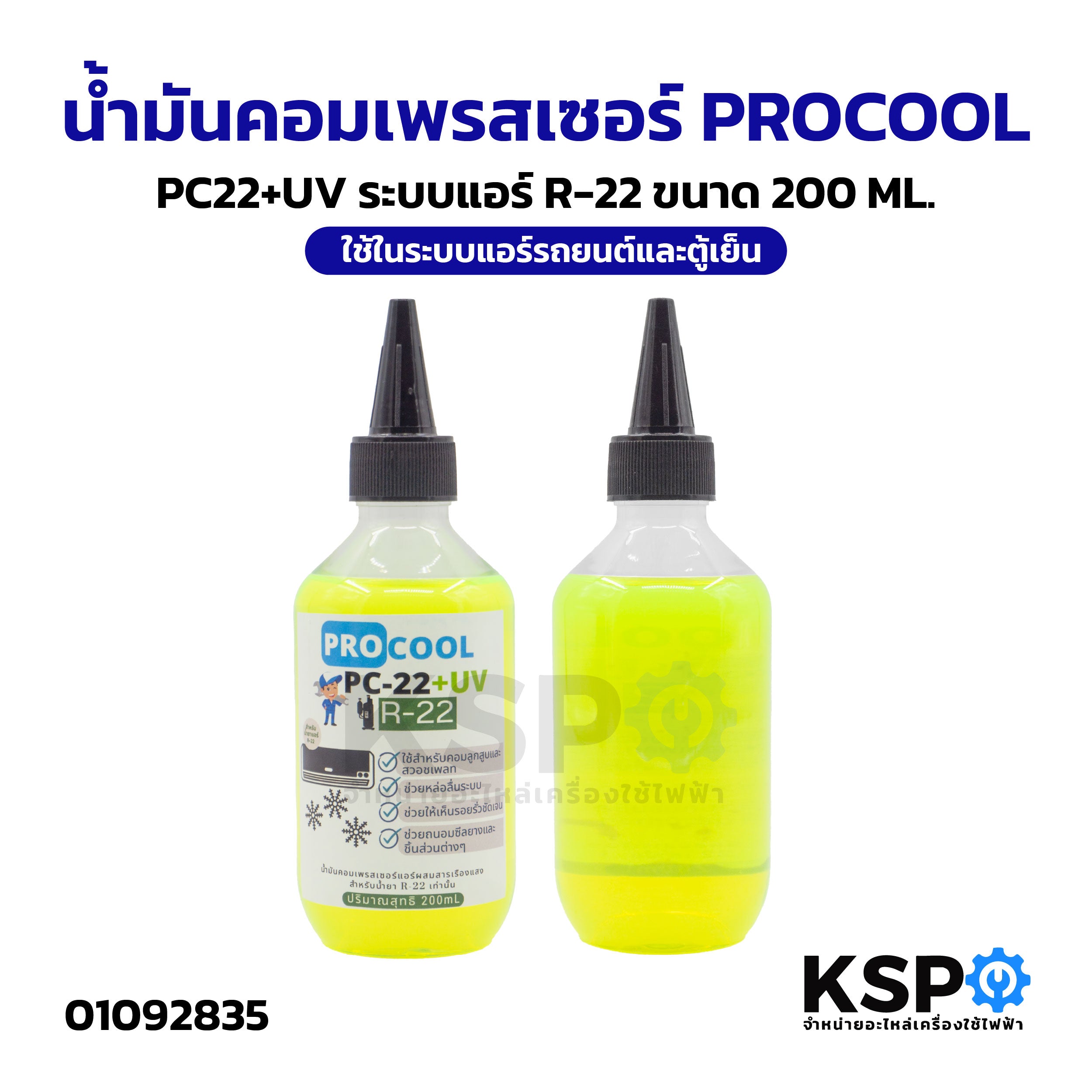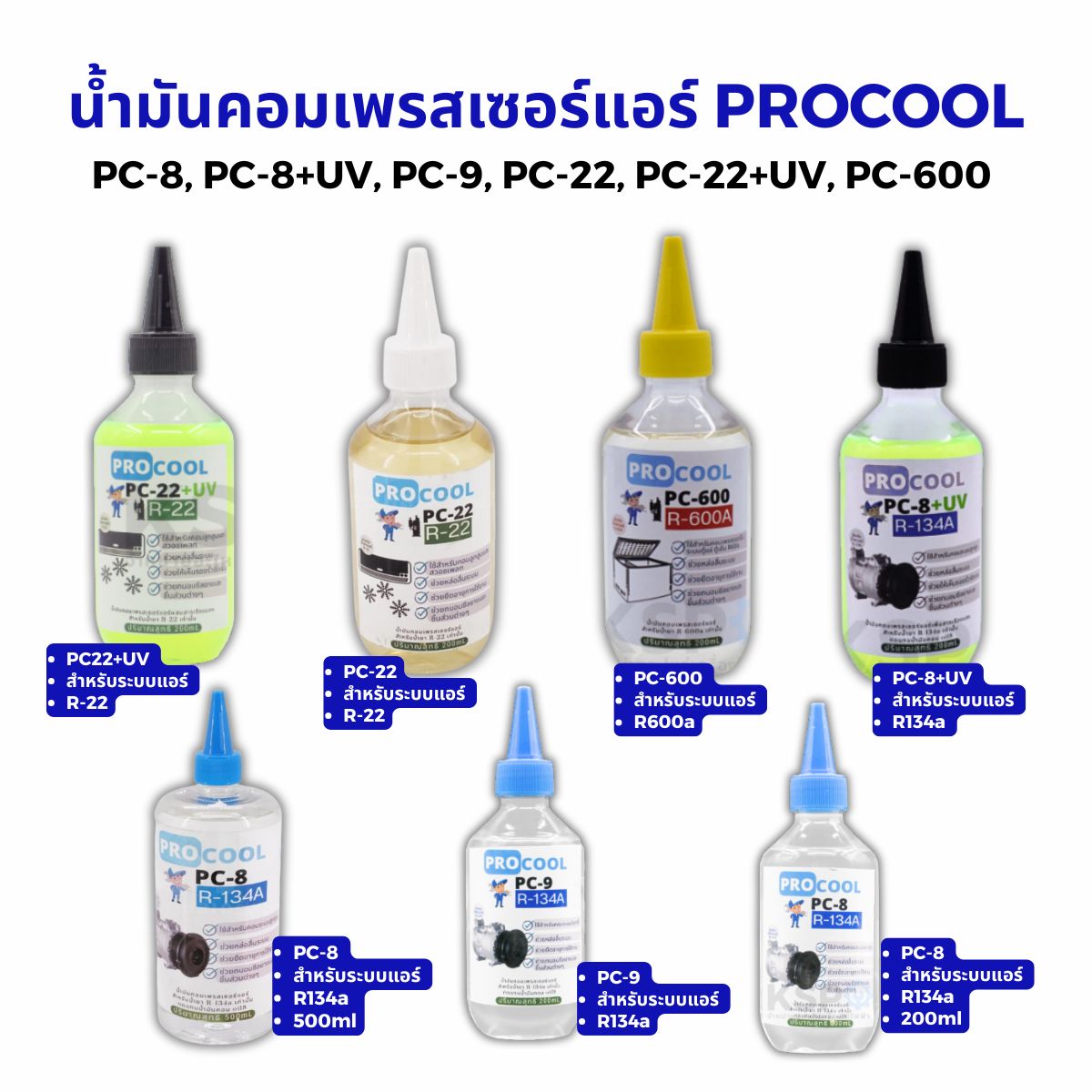 น้ำมันคอมเพรสเซอร์แอร์ PROCOOL PC-8, PC-8+UV, PC-9, PC-22, PC-22+UV, PC-600 ขนาด 200ml 500ml ใช้ในระบบแอร์รถยนต์และตู้เย็น อะไหล่แอร์