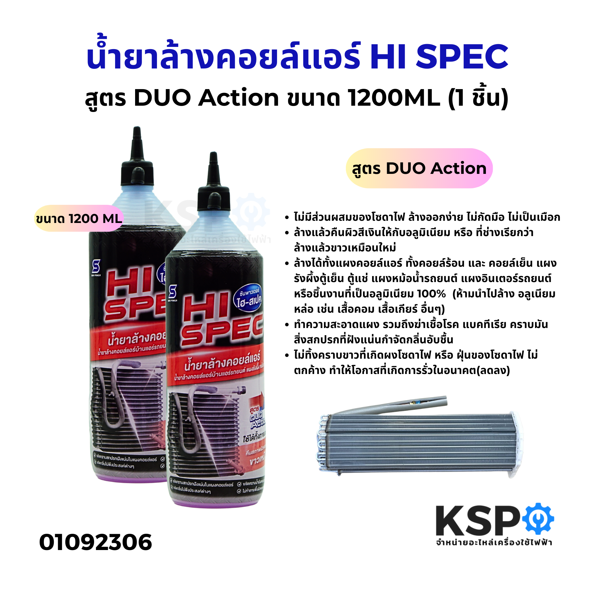 น้ำยาล้างคอยล์แอร์ COOL F-2, SUPER BRIGHT CLEANER, HI SPEC CLEAN ใช้ล้างคอยล์เย็น คอยล์ร้อน ล้างแผงรังผึ้ง ได้ทั้งแอร์บ้าน และ แอร์รถยนต์ อะไหล่แอร์ ผลิตภัณฑ์ทำความสะอาดคอยล์แอร์คุณภาพสูง ช่วยขจัดคราบสกปรก ฝุ่นละออง คราบมัน และสิ่งสกปรกที่สะสมบนคอยล์ เพิ่มประสิทธิภาพการทำความเย็น ลดการใช้ไฟฟ้า ยืดอายุการใช้งานของเครื่องปรับอากาศ ใช้ได้กับทั้งแอร์บ้านและแอร์รถยนต์ มี 3 แบรนด์ให้เลือก COOL F-2, SUPER BRIGHT CLEANER และ HI SPEC CLEAN ปลอดภัย ไม่กัดกร่อนคอยล์