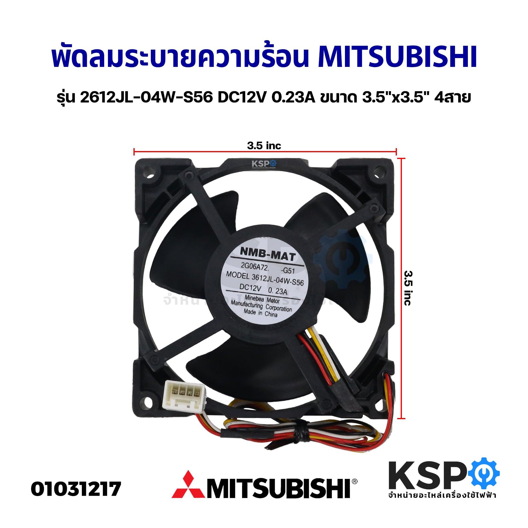 พัดลมตู้เย็น พัดลมระบายความร้อน MITSUBISHI มิตซูบิชิ รุ่น 2612JL-04W-S56 DC12V 0.23A ขนาด 3.5"x3.5" 4สาย อะไหล่ตู้เย็น