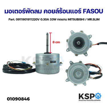 มอเตอร์พัดลม คอยล์ร้อนแอร์ Part. 0911901911220V 0.30A 33W ทดแทน MITSUBISHI / MR.SLIM อะไหล่แอร์