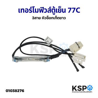 เทอร์โมฟิวส์ตู้เย็น 77C 3สาย หัวซ็อกเก็ตขาว อะไหล่ตู้เย็น