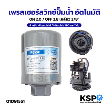 เพรสเชอร์สวิทซ์ปั๊มน้ำ อัตโนมัติ ON 2.0 / OFF 2.8 เกลียว 3/8" สำหรับ Mitsubishi / Hitachi / ITC และทั่วไป อะไหล่ปั๊มน้ำ