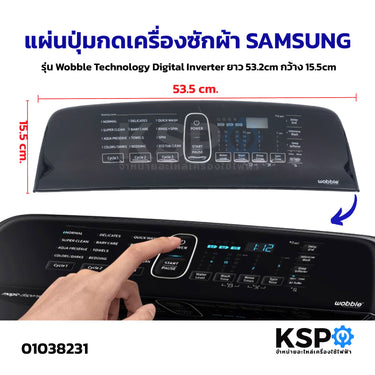 แผ่นปุ่มกดเครื่องซักผ้า SAMSUNG ซัมซุง รุ่น Wobble Technology Digital Inverter ยาว 53.2cm กว้าง 15.5cm (ถอด) หน้ากากปุ่มกด พลาสติก อะไหล่เครื่องซักผ้า