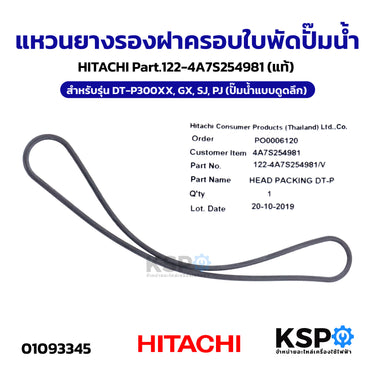 แหวนยางรองฝาครอบใบพัดปั๊มน้ำ HITACHI ฮิตาชิ Part.122-4A7S254981 รุ่น DT-P300XX, GX, SJ, PJ เฉพาะรุ่นปั๊มน้ำแบบดูดลึก (แท้) อะไหล่ทดแทนที่จำเป็นสำหรับการซ่อมแซมปั๊มน้ำที่มีปัญหาด้านการรั่วซึม ช่วยป้องกันการรั่วซึมของน้ำและเพิ่มประสิทธิภาพการทำงานของปั๊มน้ำ HITACHI ของคุณ สินค้าแท้จากศูนย์