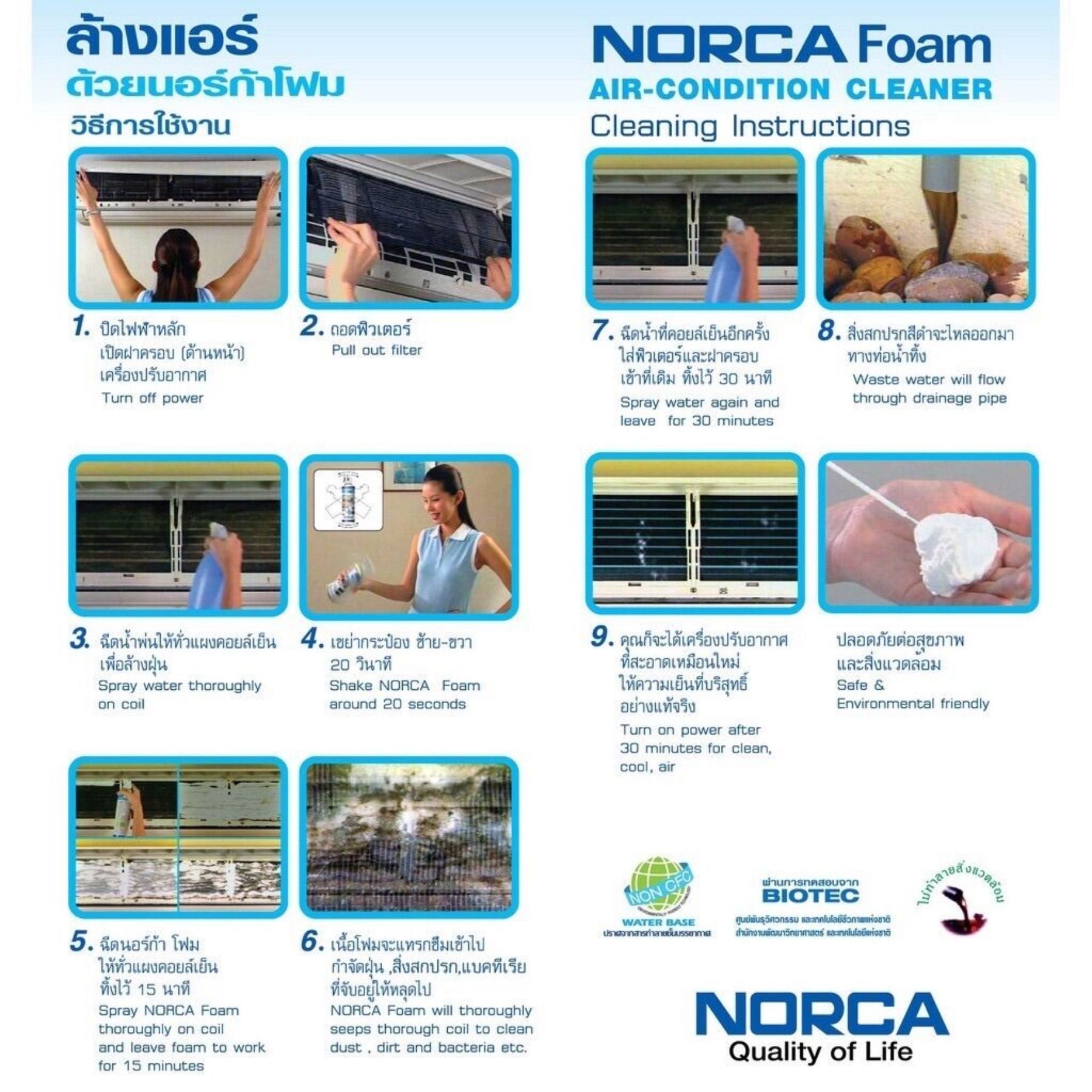 โฟมล้างแอร์ โฟมล้างแผงคอลย์เย็นแอร์ นอร์ก้า NORCA FOAM CLEANER ขนาด 500ml(กระป๋องน้ำเงิน) อะไหล์ทดแทนที่จำเป็นสำหรับการซ่อมแซมและบำรุงรักษาเครื่องปรับอากาศที่มีปัญหาด้านความสะอาด ช่วยให้แอร์ของคุณกลับมาทำงานได้อย่างมีประสิทธิภาพเต็มที่ ทำความสะอาดใบพัดลม ช่วยลดกลิ่นอับ ฆ่าเชื้อโรค ลดฝุ่นละออง ประหยัดค่าไฟ เพิ่มอายุการใช้งานแอร์ ขนาด 500ml ใช้งานง่าย สะดวก ปลอดภัย