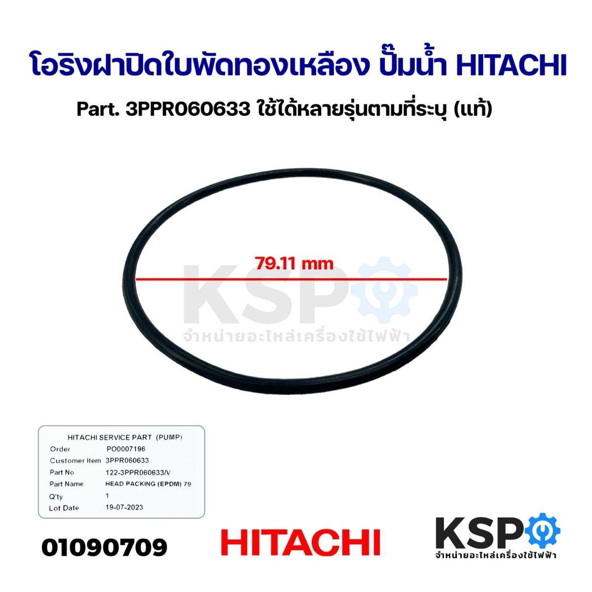 โอริงฝาปิดใบพัดทองเหลือง ปั๊มน้ำ HITACHI ฮิตาชิ Part. 3PPR060633 ใช้ได้หลายรุ่นตามที่ระบุ (แท้) อะไหล่ปั๊มน้ำ