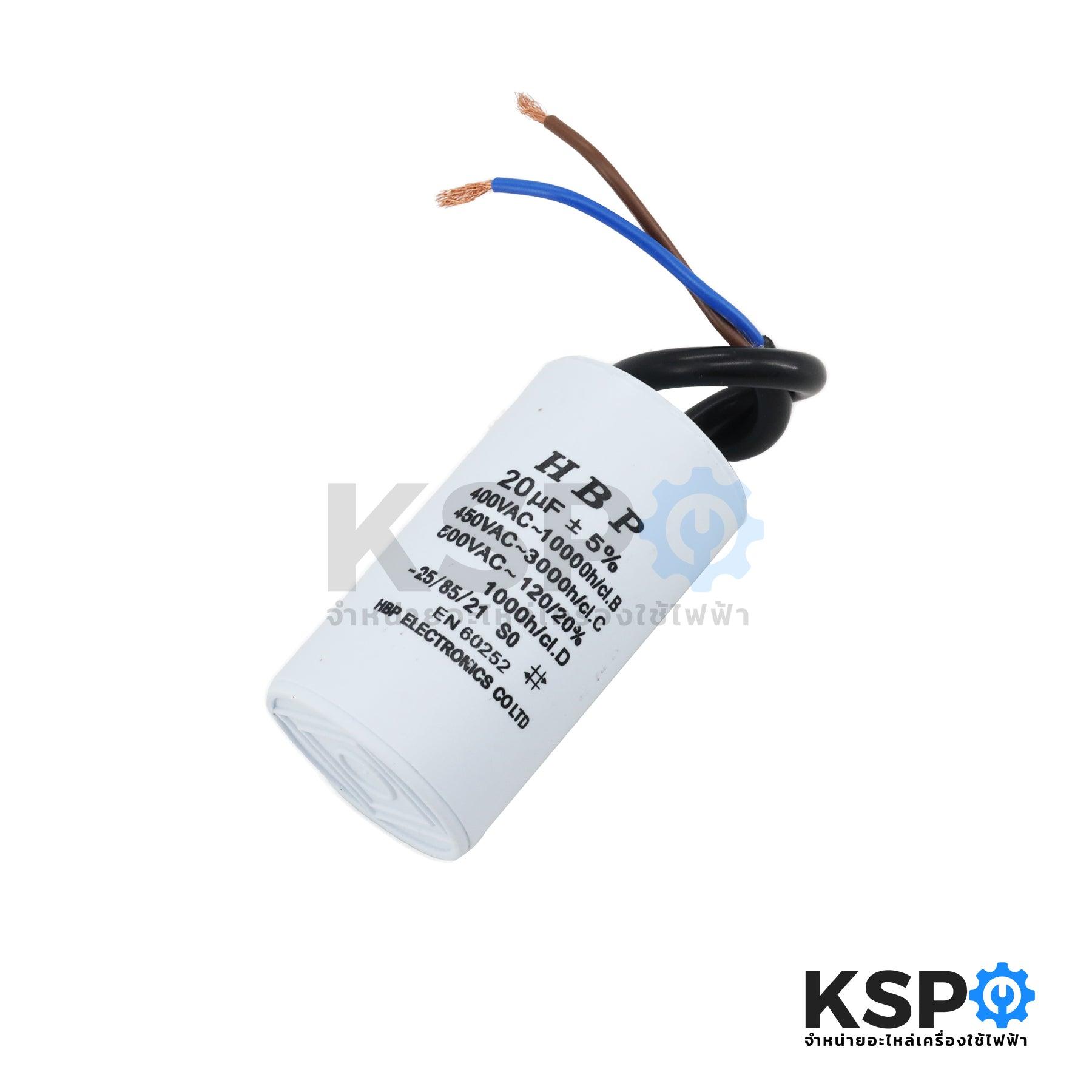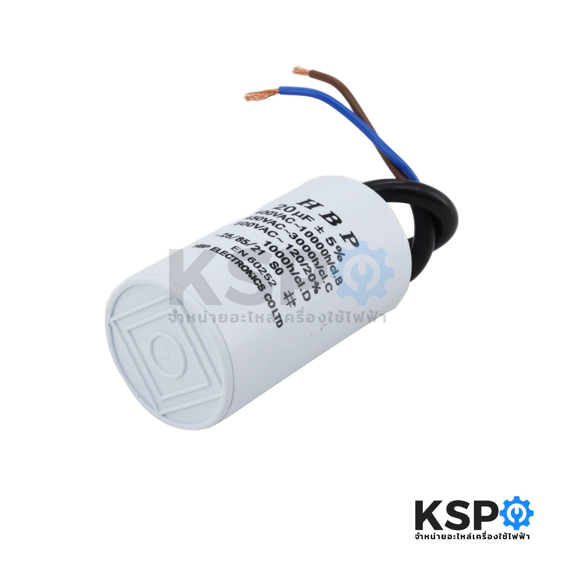 คาปาซิเตอร์ เครื่องซักผ้า ปั๊มน้ำ 20UF-500V ตัวกลมมีสาย อะไหล่เครื่องซักผ้า