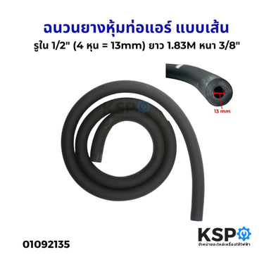 ฉนวนยางหุ้มท่อแอร์ แบบเส้น รูใน 1/2" (4 หุน = 13mm) ยาว 1.83M หนา 3/8" ใช้กับท่อทองแดงท่อน้ำยา ท่อสารทำความเย็น ท่อน้ำร้อน อะไหล่แอร์
