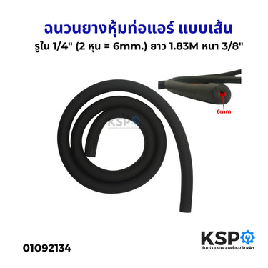 ฉนวนยางหุ้มท่อแอร์ แบบเส้น รูใน 1/4" (2 หุน = 6mm.) ยาว 1.83M หนา 3/8" ใช้กับท่อทองแดงท่อน้ำยา ท่อสารทำความเย็น ท่อน้ำร้อน อะไหล่แอร์