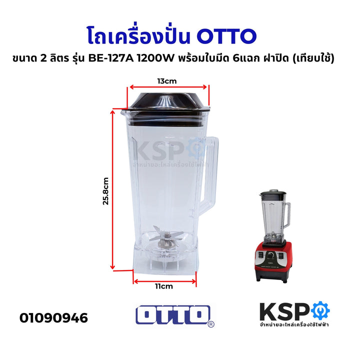 โถปั่น โถเครื่องปั่น 2ลิตร OTTO ออตโต เครื่องปั่นทรงพลัง รุ่น BE-127A 1200W พร้อม ใบมีด 6แฉก ฝาปิด เครื่องปั่นน้ำผลไม้ (เทียบใช้) อะไหล่เครื่องปั่น