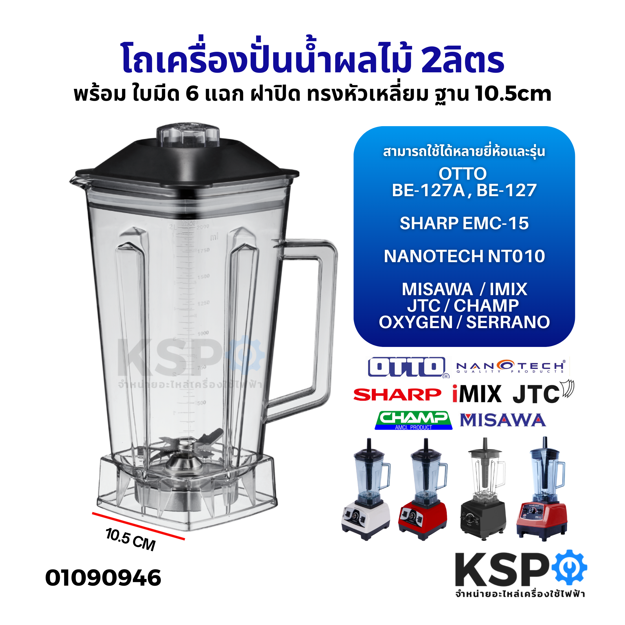 โถปั่น โถเครื่องปั่น 2ลิตร OTTO BE-127A BE-127 / Sharp EMC-15 / Nanotech NT010 พร้อม ใบมีด 6แฉก ฝาปิด เครื่องปั่นน้ำผลไม้ เครื่องปั่นทรงพลัง (เทียบใช้) อะไหล่เครื่องปั่น