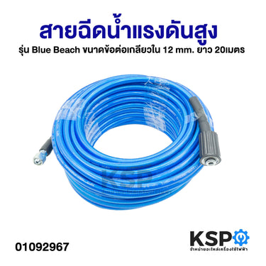 สายฉีดน้ำเเรงดันสูงรุ่น Blue Beach ขนาดข้อต่อเกลียวใน 12mm. ยาว 20เมตร อุปกรณ์ช่าง