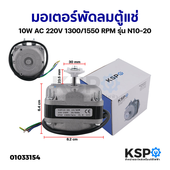 มอเตอร์พัดลมตู้แช่ 10W AC 220V 1300/1550 RPM รุ่น N10-20 (สามารถใช้ได้กับตู้แช่ทั่วไป) (ทองแดง) อะไหล่ตู้เย็น ตู้แช่