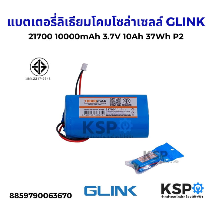 แบตเตอรี่ลิเธียม GLINK จีลิงค์ รุ่น 2P 21700 ความจุ 10000mAh 3.5V 10Ah 37Wh สำหรับไฟฉาย สว่านไฟฟ้า เครื่องมือต่างๆ อุปกรณ์แบตเตอรี่
