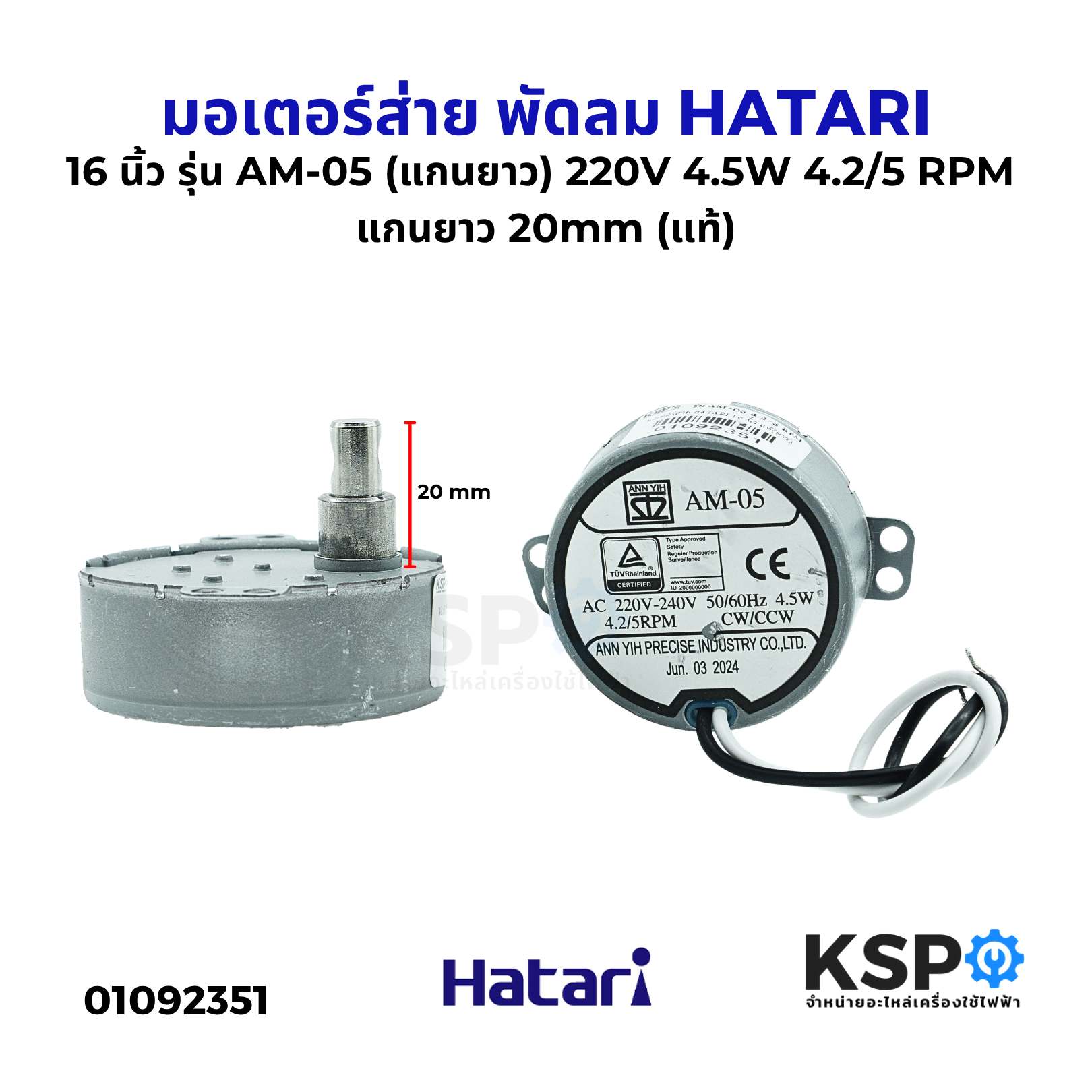 - มอเตอร์ส่ายนี้เหมาะสำหรับพัดลม HATARI ขนาด 16 นิ้ว
