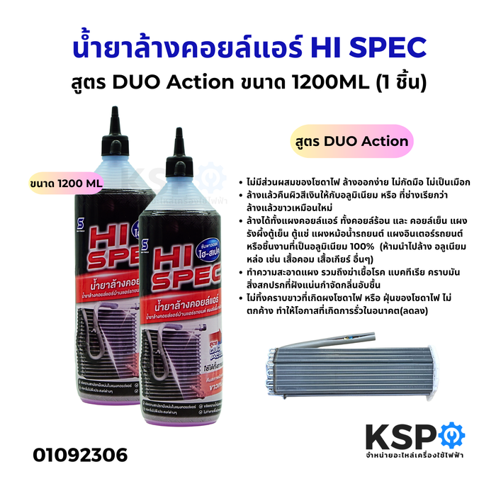 น้ำยาล้างคอยล์แอร์ HI SPEC ไฮ-สเปค สูตร DUO Action ขนาด 1200ML ใช้ล้างคอยล์เย็น คอยล์ร้อน ล้างแผงรังผึ้ง ได้ทั้งแอร์บ้าน และ แอร์รถยนต์ อะไหล่แอร์