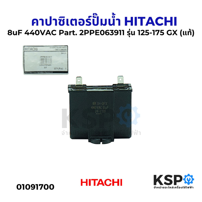 คาปาซิเตอร์ปั๊มน้ำ HITACHI ฮิตาชิ 8uF 440VAC Part. 2PPE063911 รุ่น 125-175 GX (แท้) อะไหล่ปั๊มน้ำ