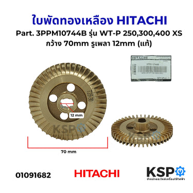ใบพัดทองเหลือง HITACHI ฮิตาชิ Part. 3PPM10744B รุ่น WT-P 250,300,400 XS กว้าง 70mm รูเพลา 12mm (แท้) อะไหล่ปั๊มน้ำ