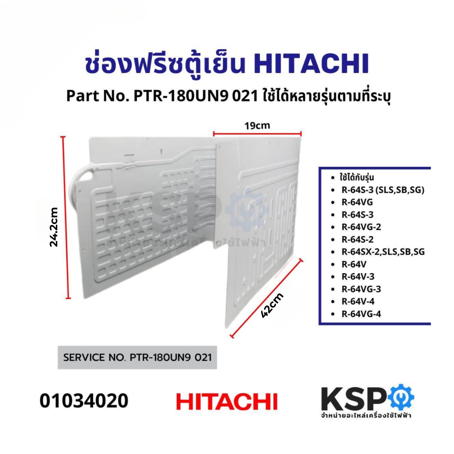ช่องฟรีซตู้เย็น HITACHI ฮิตาชิ Part No. PTR-180UN9 021 รุ่น R-64S-3,SLS,SB,SG / R-64VG / R-64S-3 / R-64VG-2 / R-64S-2 / R-64SX-2,SLS,SB,SG / R-64V / R-64V-3 / R-64VG-3 / R-64V-4 / R-64VG-4 อะไหล่ตู้เย็น