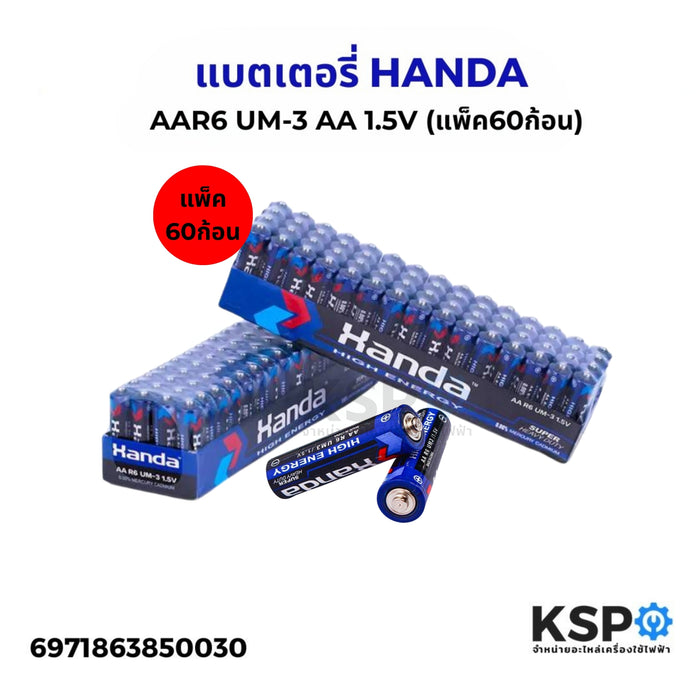 แบตเตอรี่ HANDA AAR6 UM-3 AA 1.5V (แพ็ค60ก้อน) ถ่านรีโมท เหมาะสำหรับรีโมท อุปกรณ์อิเล็คทรอนิกส์ต่างๆ แบตเตอรี่