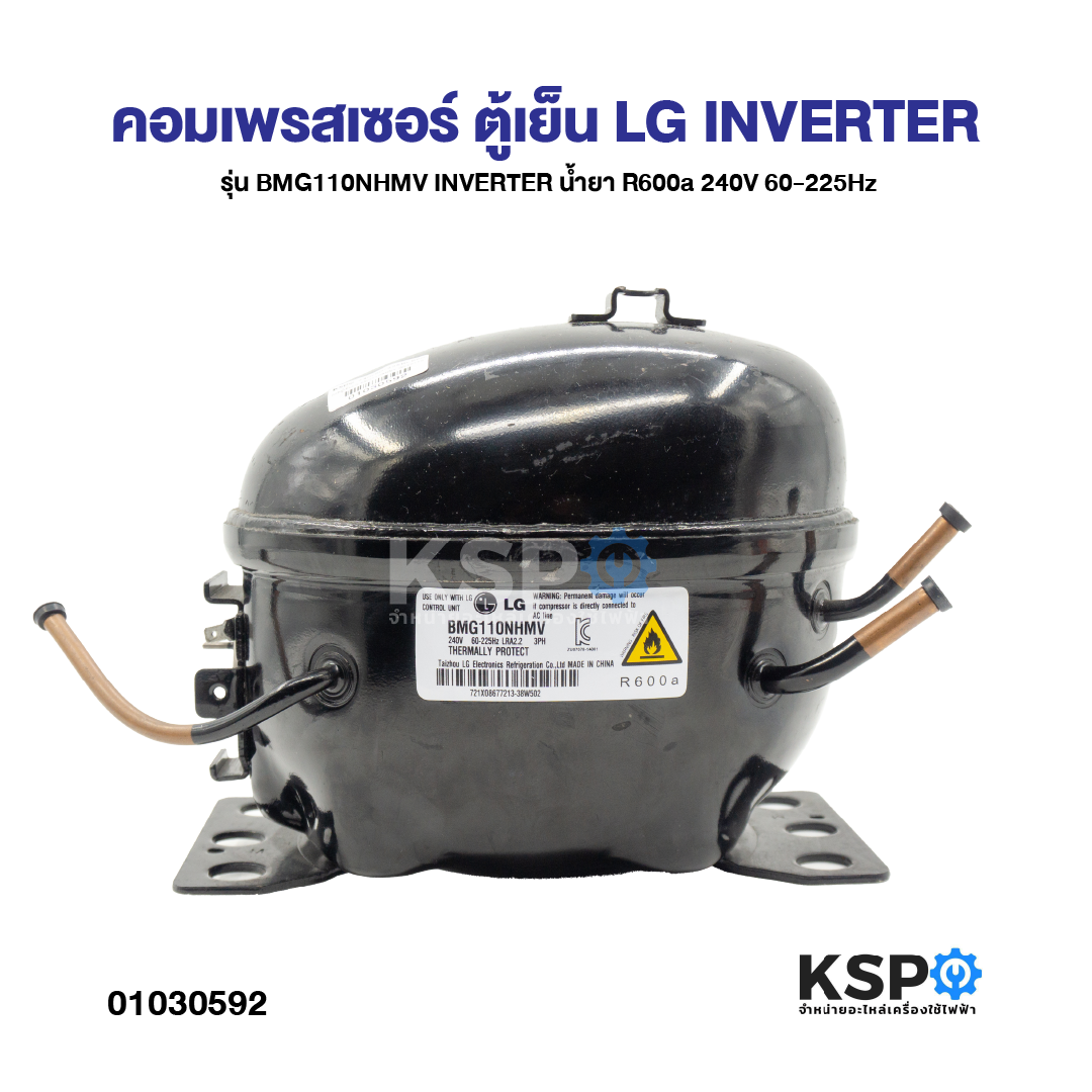 คอมเพรสเซอร์ตู้เย็น LG รุ่น BMG110NHMV INVERTER น้ำยา R600a 240V 60-225Hz (เทียบใช้) อะไหล่ตู้เย็นคุณภาพสูงสำหรับการซ่อมหรือเปลี่ยนคอมเพรสเซอร์ ช่วยให้ตู้เย็นทำงานได้เต็มประสิทธิภาพ ประหยัดพลังงานด้วยระบบ INVERTER รองรับการใช้งานกับน้ำยา R600a เหมาะสำหรับช่างซ่อมหรือผู้ที่ต้องการเปลี่ยนอะไหล่ด้วยตนเอง
