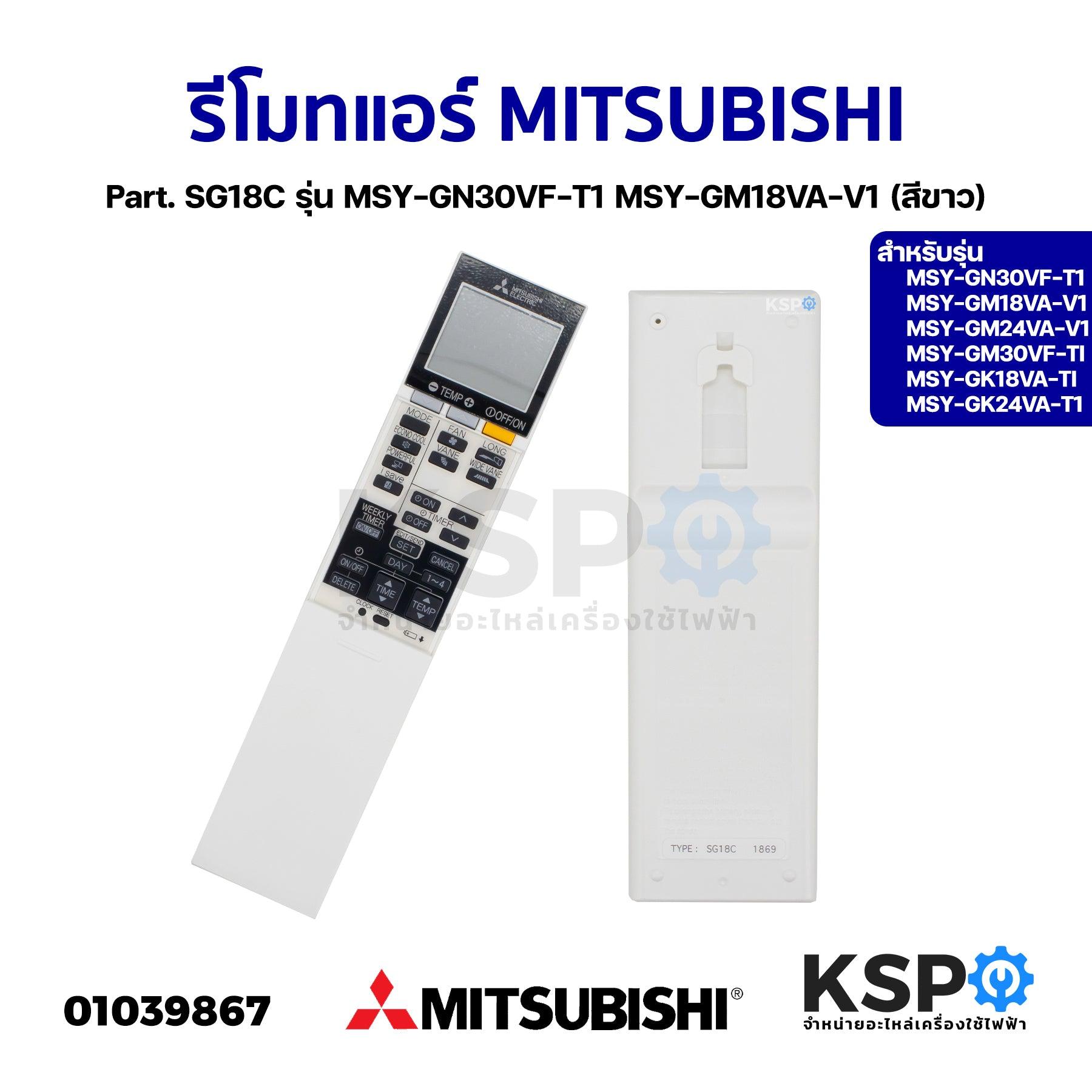 รีโมทแอร์ MITSUBISHI มิตซูบิชิ Part. SG18C รุ่น MSY-GN30VF-T1 MSY-GM18VA-V1 (สีขาว) อะไหล่แอร์
