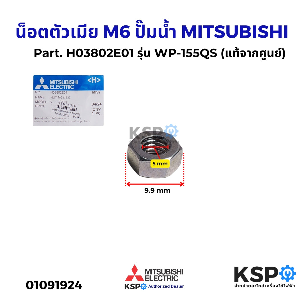 น็อตตัวเมีย M6 ปั๊มน้ำ MITSUBISHI มิตซูบิชิ Part. H03802E01 รุ่น WP-155QS (แท้จากศูนย์) อะไหล่ปั๊มน้ำ