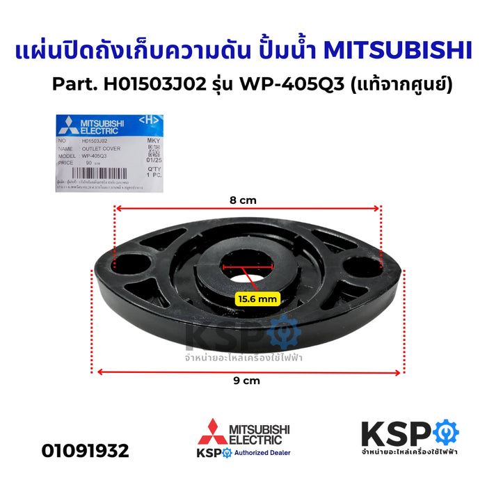 แผ่นปิดถังเก็บความดัน ปั้มน้ำ MITSUBISHI มิตซูบิชิ Part. H01503J02 รุ่น WP-405Q3 (แท้จากศูนย์) อะไหล่ปั๊มน้ำ