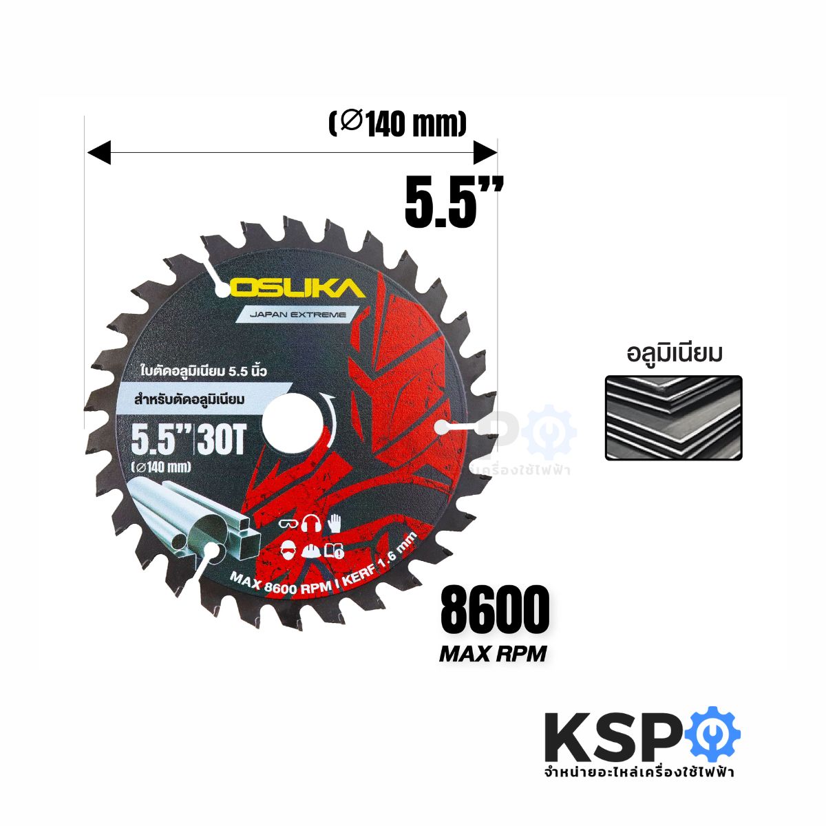 ใบตัดอลูมิเนียม OSUKA ของแท้ ขนาด 5.5 นิ้ว 30 ฟัน รุ่น OSASW9022 ใช้กับเลื่อยวงเดือนไร้สาย เหมาะสำหรับงานตัดอลูมิเนียม โลหะบาง และวัสดุที่ต้องการความแม่นยำสูง