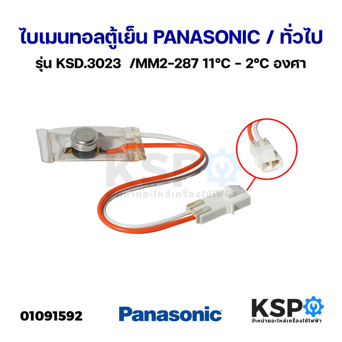 ไบเมนทอลตู้เย็น ตัวควบคุมละลาย PANASONIC พานาโซนิค รุ่น KSD.3023 / MM2-287 เป็นอะไหล่ตู้เย็นที่มีคุณสมบัติในการควบคุมการละลายให้ทำงานได้อย่างมีประสิทธิภาพ โดยสามารถตั้งอุณหภูมิในการทำงานได้ระหว่าง 11°C - 2°C เหมาะสำหรับตู้เย็นในรุ่นต่างๆ ตัวควบคุมนี้มี 2 สายที่สามารถใช้งานได้ง่ายและทนทาน