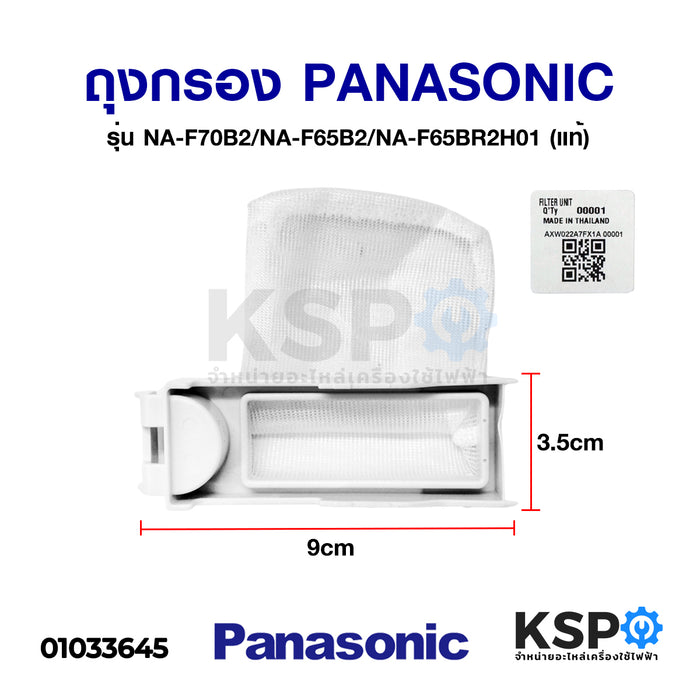 ถุงกรองเครื่องซักผ้า PANASONIC พานาโซนิค 9cm x 3.5cm Part no. AXW022A7JS10 NA-F65B2 NA-F70B2 (แท้) อะไหล่เครื่องซักผ้า