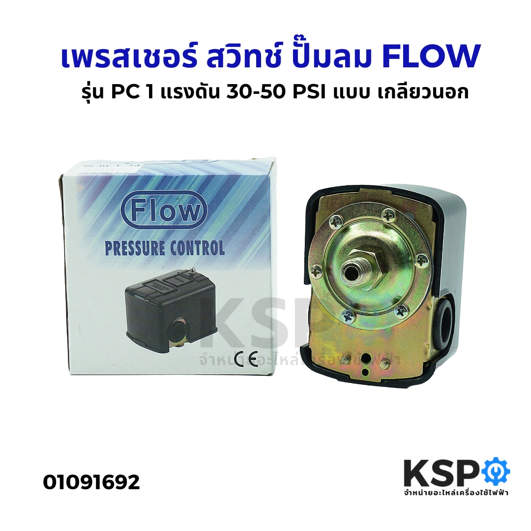 เพรสเชอร์ สวิทช์ ปั๊มลม FLOW รุ่น PC 1 แรงดัน 30-50 PSI แบบ เกลียวนอก อะไหล่ปั๊มลม