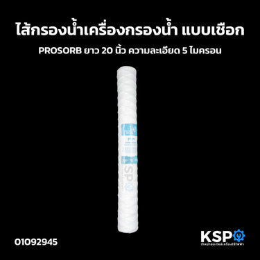 ไส้กรองน้ำ เครื่องกรองน้ำ แบบเชือก PROSORB ยาว 20 นิ้ว ความละเอียด 5 ไมครอน อะไหล่เครื่องกรองน้ำ