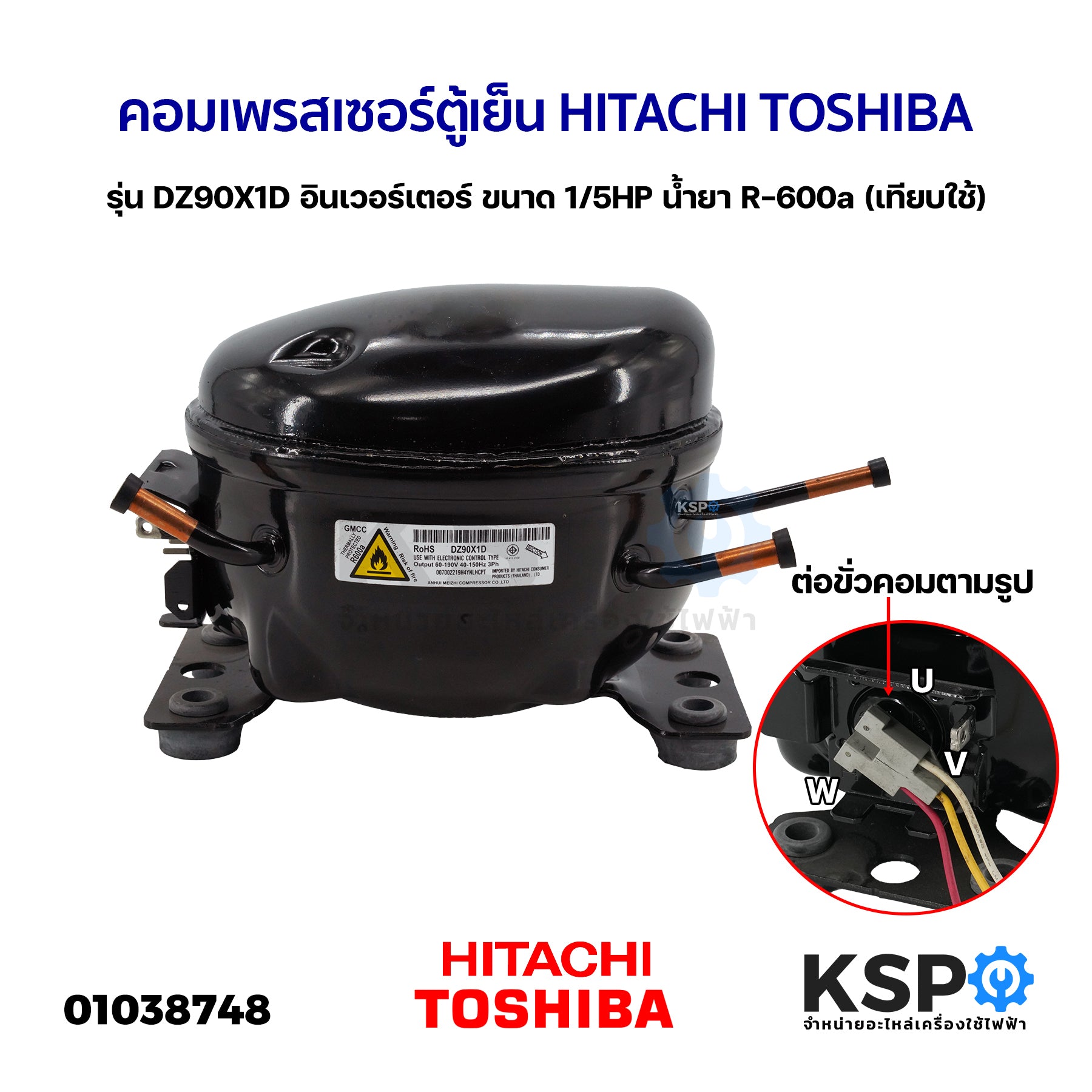 คอมเพรสเซอร์ ตู้เย็น HITACHI ฮิตาชิ TOSHIBA โตชิบา รุ่น DZ90X1D อินเวอร์เตอร์ ขนาด 1/5HP น้ำยา R-600a อะไหล่ตู้เย็น