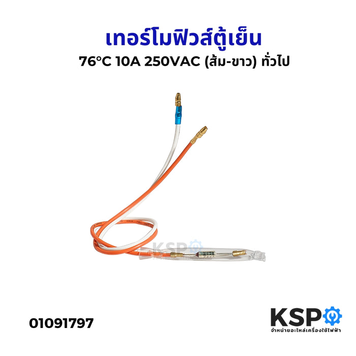 เทอร์โมฟิวส์ตู้เย็น 76°C (ส้ม-ขาว) 10A 250VAC ใช้ได้กับตู้เย็น ทุกรุ่น 76 องศา ทั่วไป อะไหล่ตู้เย็น