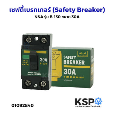 เซฟตี้เบรกเกอร์ N&A รุ่น B-130 ขนาด 30A ใช้สำหรับตัดกระแสไฟเมื่อเกิดไฟฟ้าลัดวงจรหรือกระแสไฟเกิน ช่วยเพิ่มความปลอดภัยในระบบไฟฟ้าในบ้านหรือที่ทำงาน