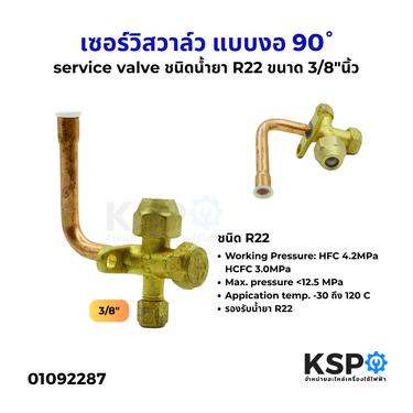 เซอร์วิสวาล์ว แบบงอ 90°Cองศา ชนิดน้ำยา R22 ขนาด 3/8"นิ้ว service valve ทั่วไป อะไหล่แอร์