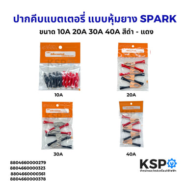 ปากคีบแบตเตอรี่ SPARK ขนาด 40A หุ้มยางออกแบบเพื่อใช้งานในงานพ่วงแบตเตอรี่และการสตาร์ทเครื่องยนต์ที่ต้องการกระแสไฟฟ้าสูง เหมาะสำหรับการต่อสายพ่วงแบตเตอรี่ พ่วงชาร์จ พ่วงสตาร์ทและงานแบตเตอรี่ทั่วไป มีการหุ้มยางเพื่อป้องกันการช็อตและเพิ่มความทนทาน