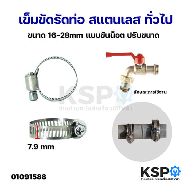 เข็มขัดรัดท่อ สแตนเลส ขนาด 16 - 28mm ทั่วไป แคลมป์รัดท่อ เหล็กรัดท่อ ท่อน้ำ ท่อน้ำมัน ท่อยาง รัดสายยาง สายแก๊ส แบบขันน็อต ปรับขนาด