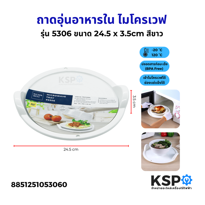 ถาดอุ่นอาหารในไมโครเวฟ ถาดรองจาน ขนาดกลาง รุ่น 5306 ขนาด 24.5 x 3.5cm สีขาว ปลอดสารก่อมะเร็ง (BPA Free) อุปกรณ์ครัวเรือน