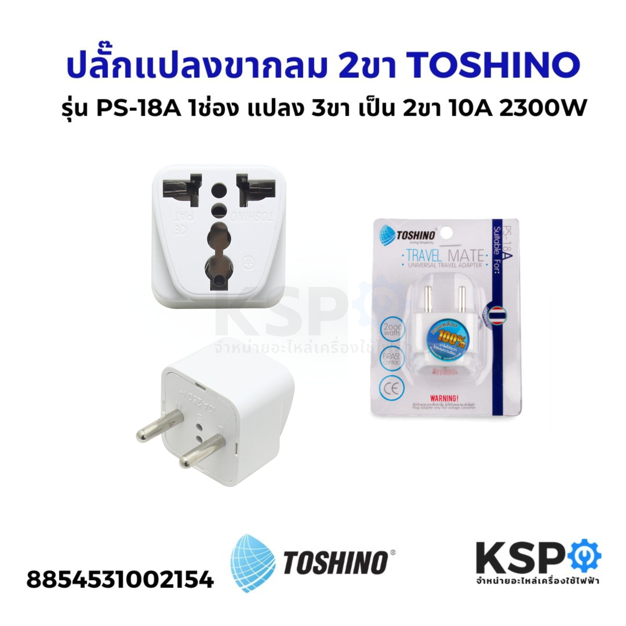 ปลั๊กแปลงขากลม 2 ขา TOSHINO รุ่น PS-18A ถูกออกแบบมาเพื่อแปลงปลั๊กไฟ 3 ขาให้สามารถใช้งานกับปลั๊กไฟ 2 ขากลมได้อย่างสะดวกและปลอดภัย ด้วยการรับกำลังไฟฟ้าสูงถึง 2300 วัตต์และกระแสไฟ 10A มาพร้อมกับวัสดุพลาสติกเกรด A ทนทาน และคุณสมบัติป้องกันการลุกลามไฟ ทำให้ปลั๊กแปลงนี้เหมาะสำหรับใช้งานกับอุปกรณ์ไฟฟ้าทั่วไป โดยเฉพาะในสถานการณ์ที่ต้องใช้งานปลั๊กแปลงในพื้นที่ที่มีการเปลี่ยนแปลงประเภทขาปลั๊ก